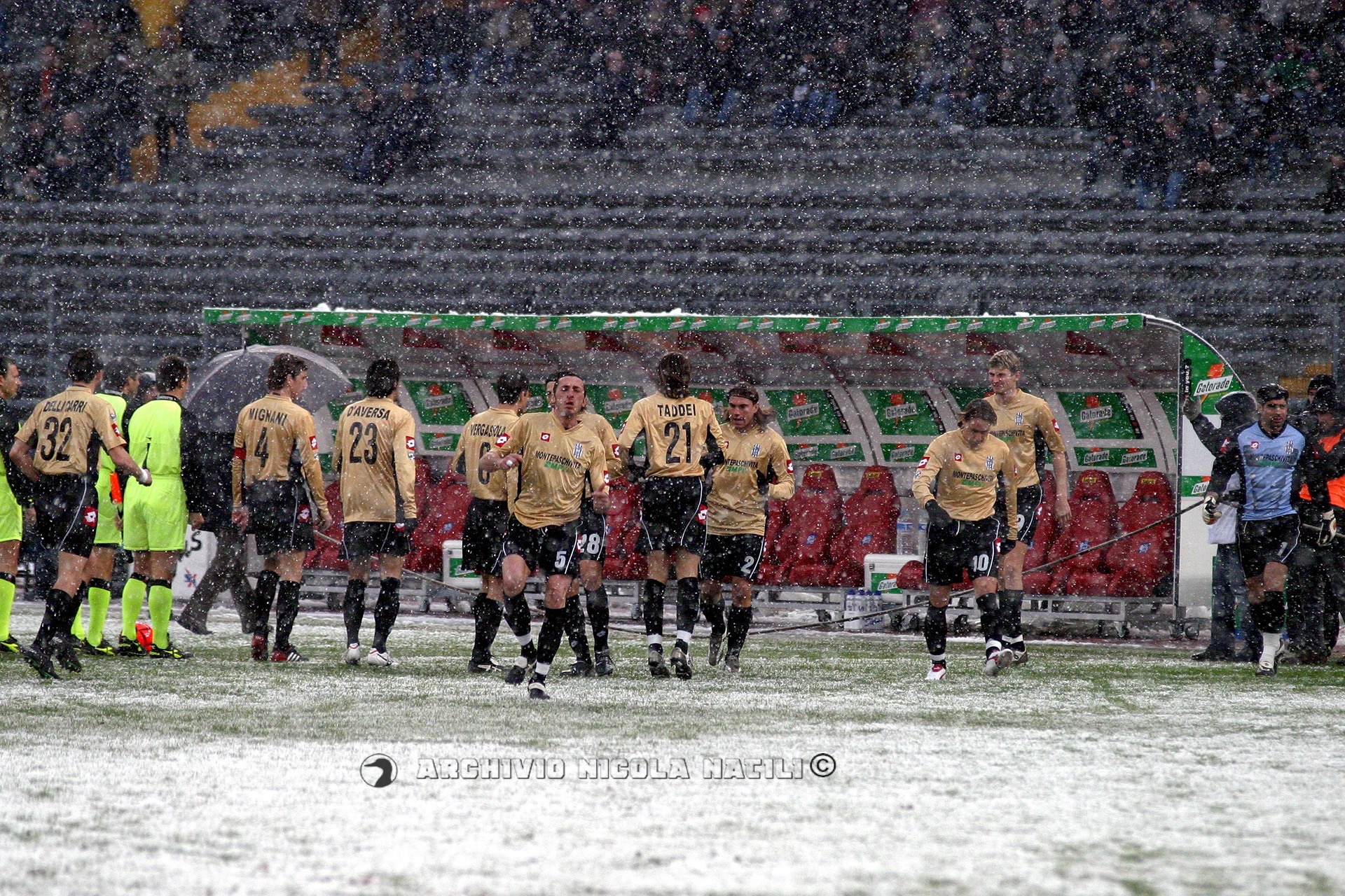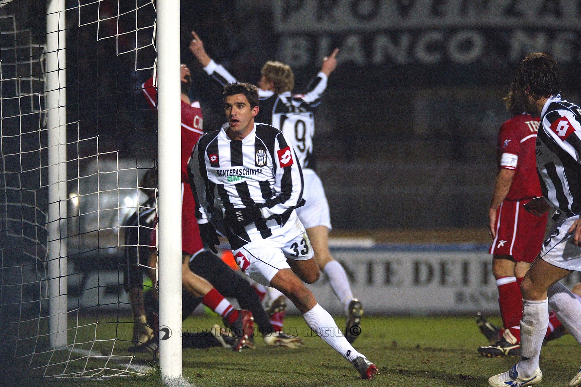 SIENA: Rossi, Cirillo (66′ Rubino), Delli Carri Mignani, Cufrè, Taddei, D’Aversa, Ardito, Guigou, Lazetic (53′ Ventola), Chiesa. All. Papadopulo.