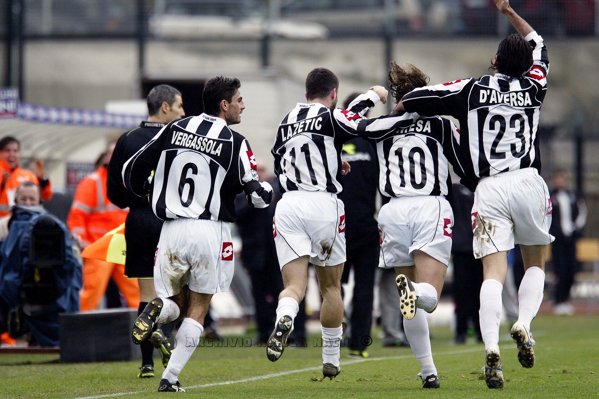 MARCATORI: 15′ rig. Del Piero (J), 37′ Trezeguet (J), 59′ rig. e 64′ Del Piero (J), 71′ rig. e 80′ Ventola (S).