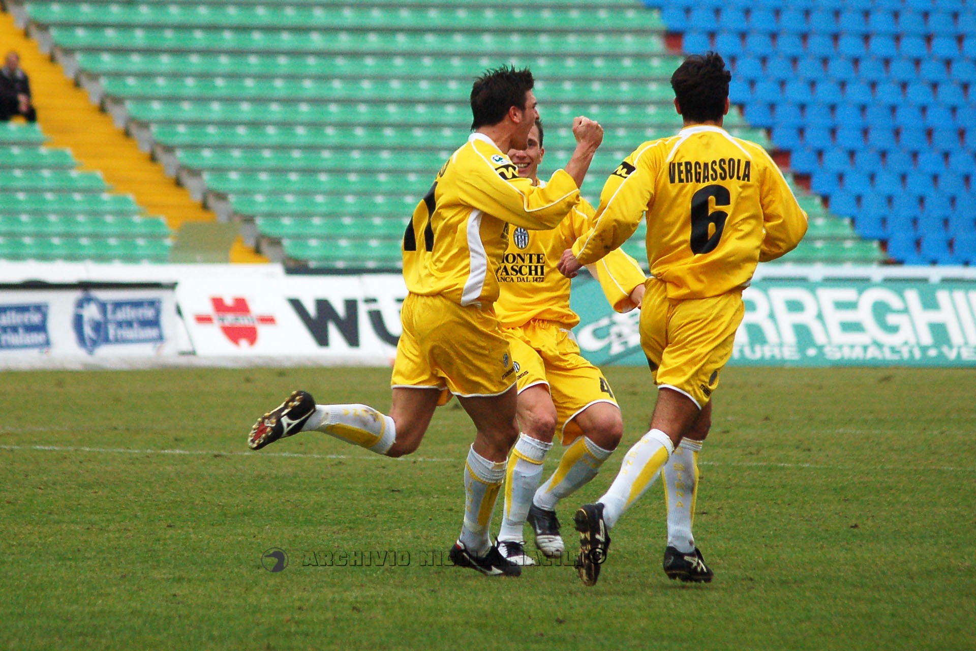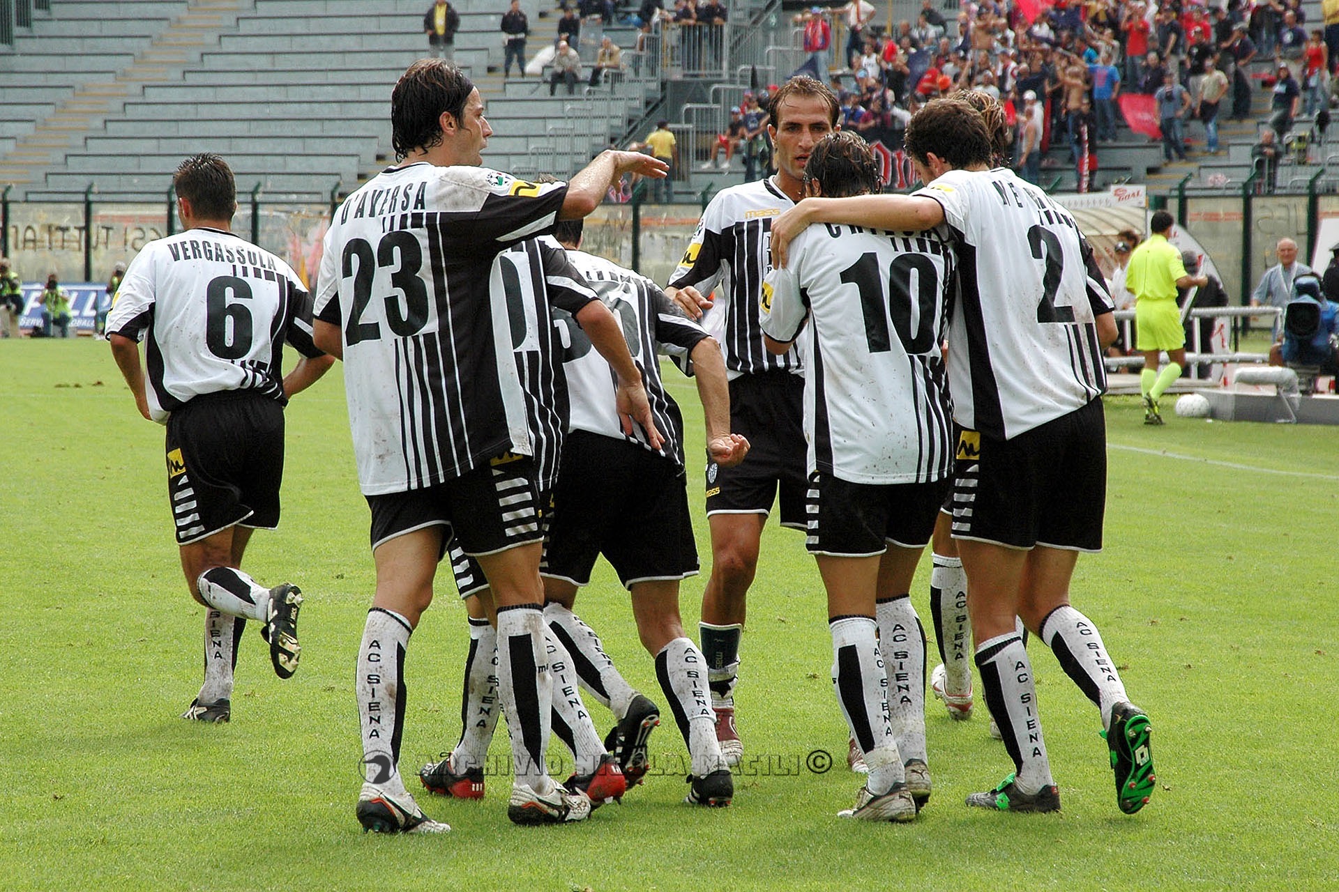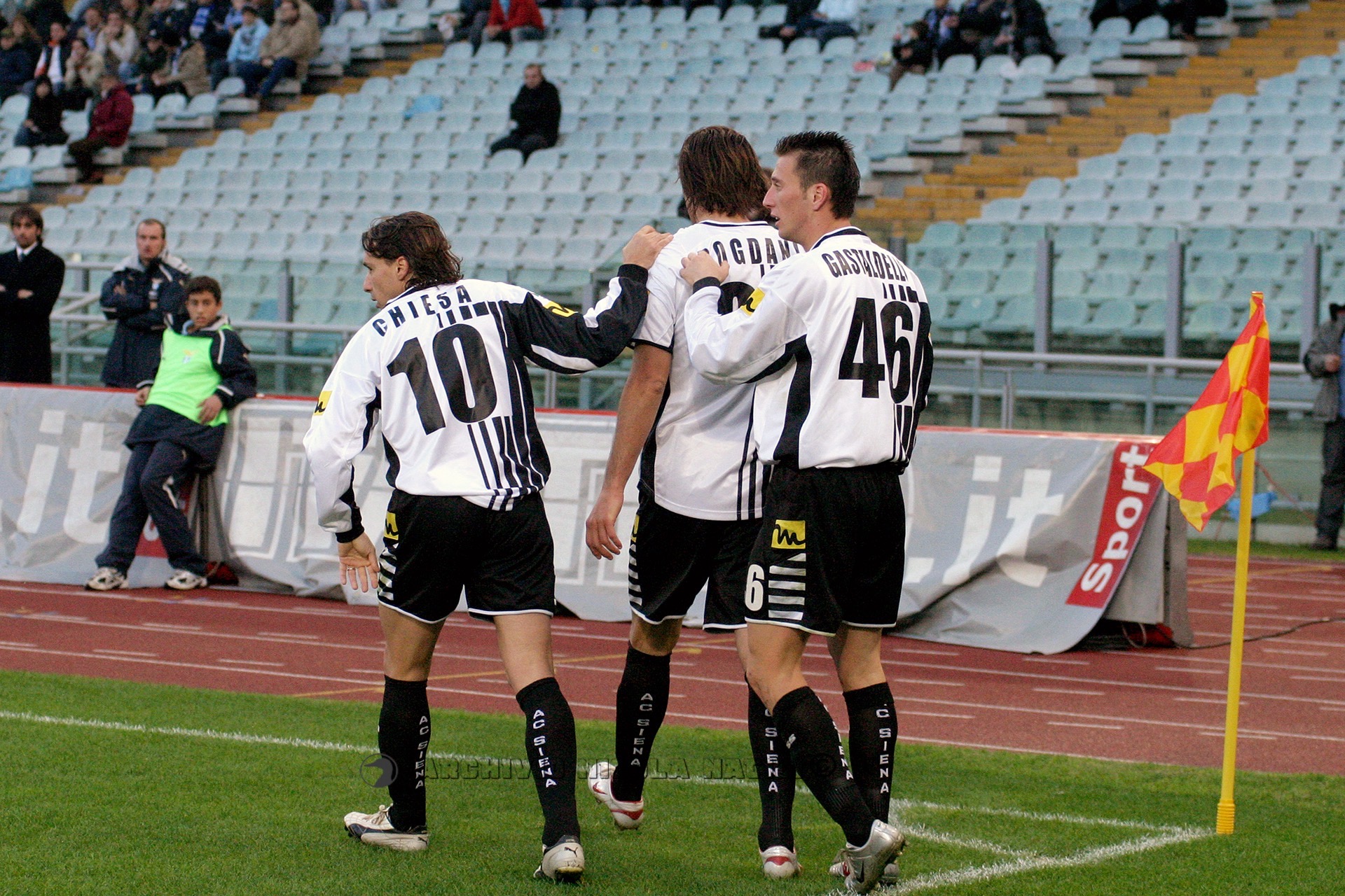 SIENA: Mirante; Negro, Legrottaglie, Portanova; Alberto, Paro, Tudor (28′ st Locatelli), Vergassola 5, Falsini; Chiesa (36′ st Marazzina), Bogdani. A disp. Fortin, Colonnese, Nanni, Molinaro, Foglio). All. De Canio.
