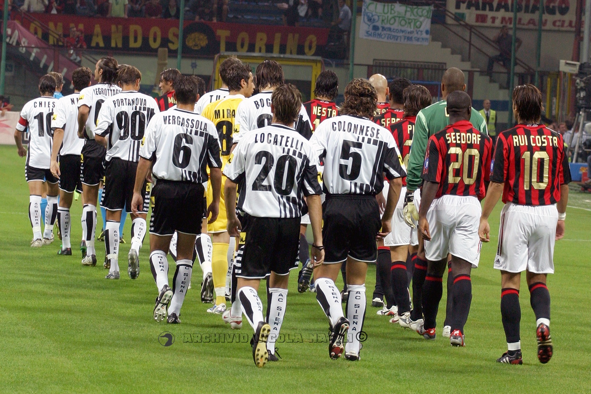 MILAN: Dida; Stam, Nesta, Maldini, Serginho; Ambrosini (dal 7′ st Cafu), Pirlo, Seedorf (dal 22′ st Gattuso); Rui Costa (dal 28′ st Kakà); Shevchenko, Gilardino. A disp. Kalac, Costacurta, Kaladze, Vogel. All. Ancelotti.SIENA: Mirante; Negro, Legrottaglie, Colonnese (dal 19′ st Marazzina), Portanova; Alberto (dal 31′ st Foglio), Tudor, Vergassola; Locatelli (dal 5′ st Falsini); Chiesa, Bogdani. A disp. Fortin, Gastaldello, Paro, Volpato. All. De Canio.