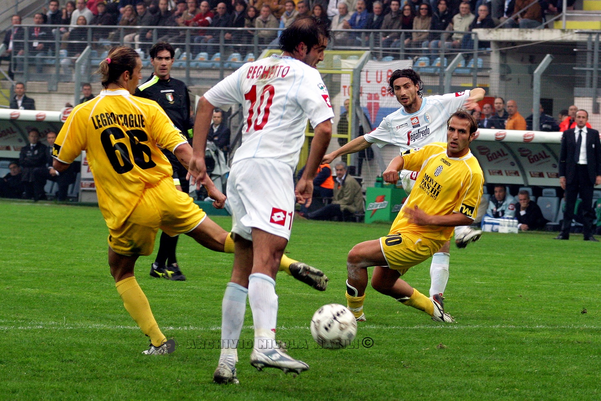 SIENA: Mirante; Negro, Legrottaglie, Portanova (1′ s.t. Alberto), Falsini; D’Aversa, Tudor, Vergassola; Locatelli (32′ s.t. Bachini); Chiesa (45′ s.t. Colonnese), Bogdani. A dsp. Fortin, Gastaldello, Paro, Nanni. All. De Canio